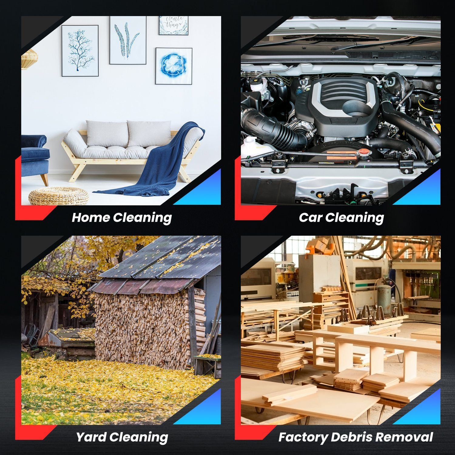 4-in-1 Versatility: Handles leaf blowing, snow clearing, dust removal, and water drying for vehicles, home interiors, garages, and outdoor spaces.