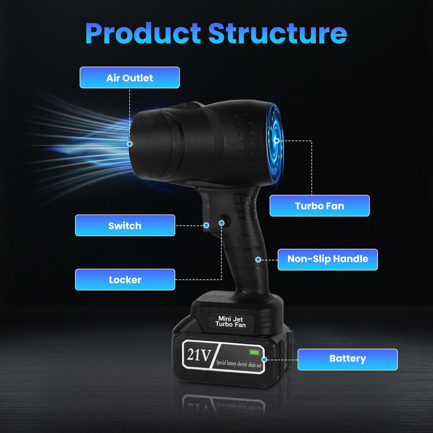 - Max Wind Speed: 130,000 RPM (52 m/s)