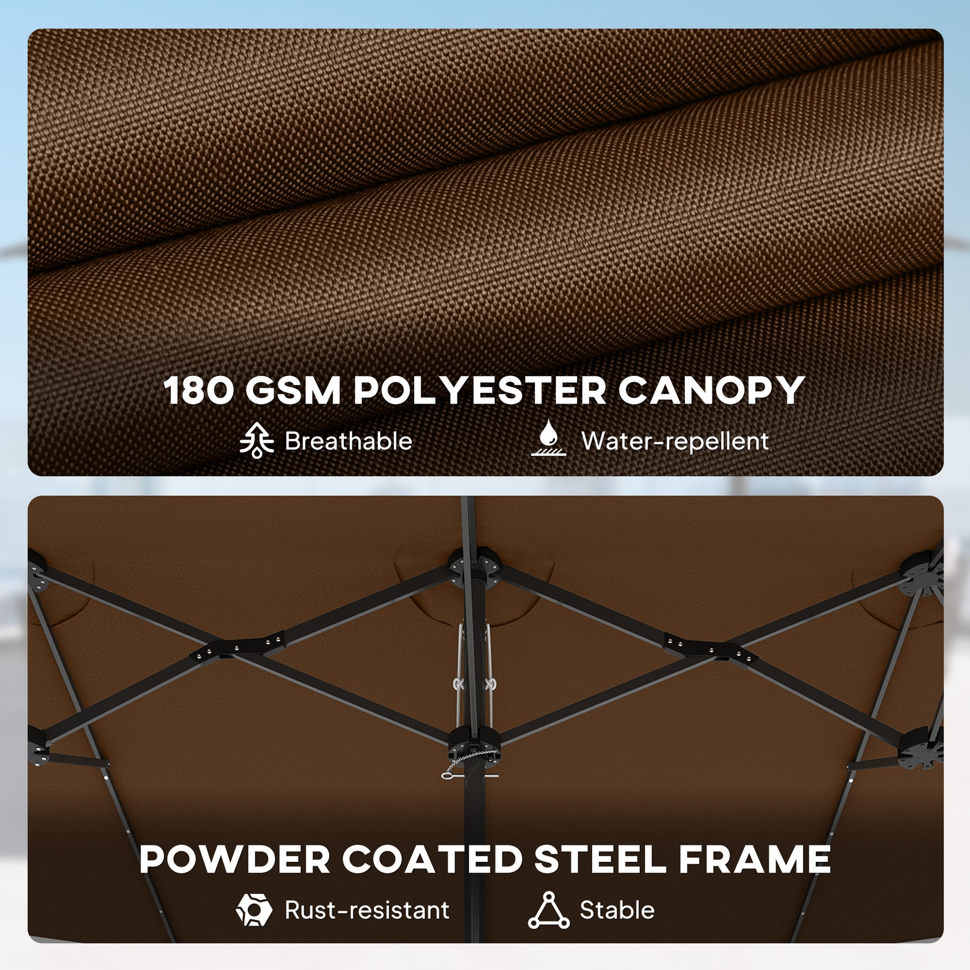- Canopy Size: Extra-large 14.8'L x 8.7'W double-sided canopy — covers more area than a standard market umbrella