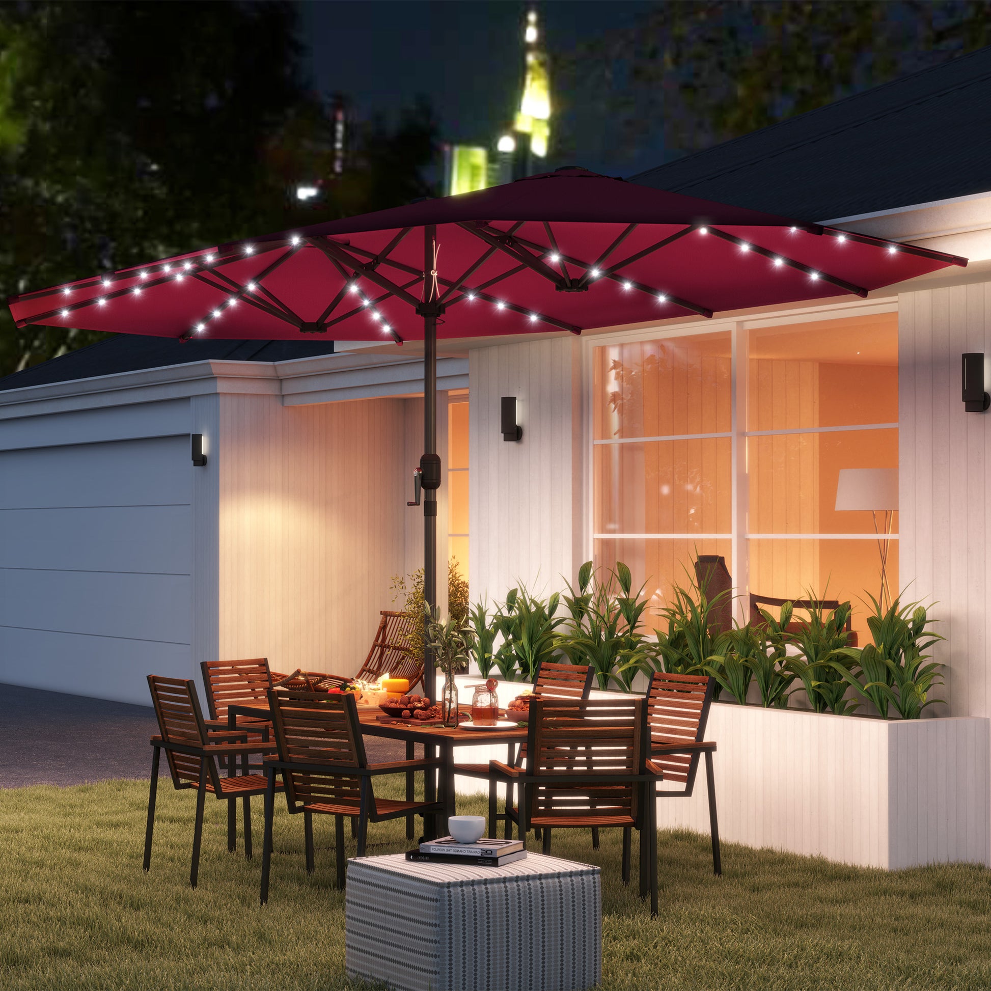 15 Ft Solar LED Patio Umbrella Parasol | Double-Sided, UV Blocking, Crank Lift