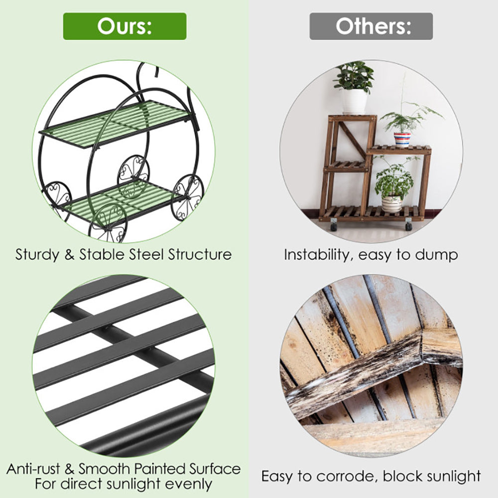 26" 2-Tier Metal Plant Cart with Wheels – Parisian Trolley Design
