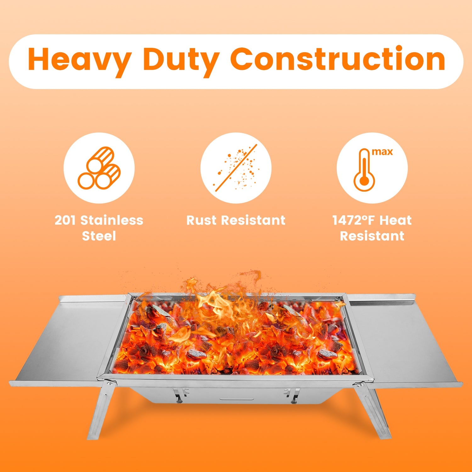 Heavy-duty 201 stainless steel withstands up to 1472Β°F (800Β°C), rust-resistant for long-lasting durability
