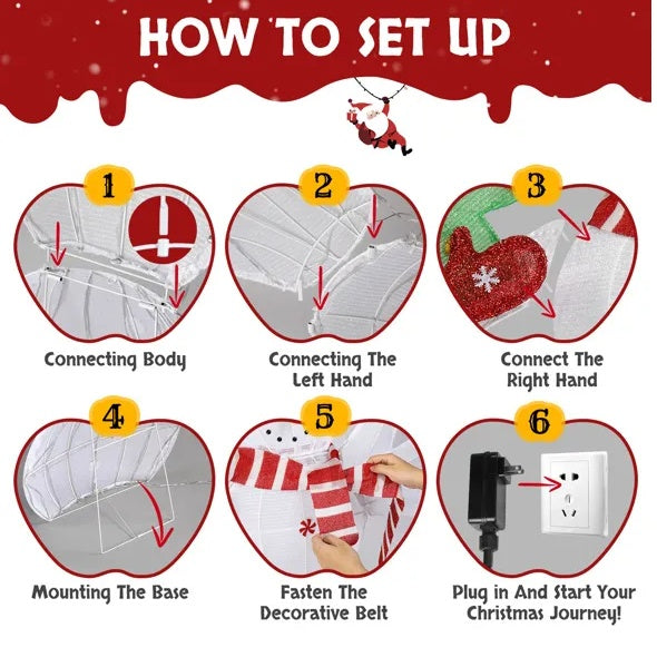 Bring magical holiday cheer to your home with this enchanting 53-inch illuminated snowman. Featuring 170 warm white LED lights, this weather-resistant decoration showcases an adorable snowman waving while holding a glowing Christmas tree. The collapsible design assembles in minutes and stores compactly, while the rustproof metal frame and waterproof fabric withstand harsh winter conditions. Perfect for yards, porches, or indoor displays.